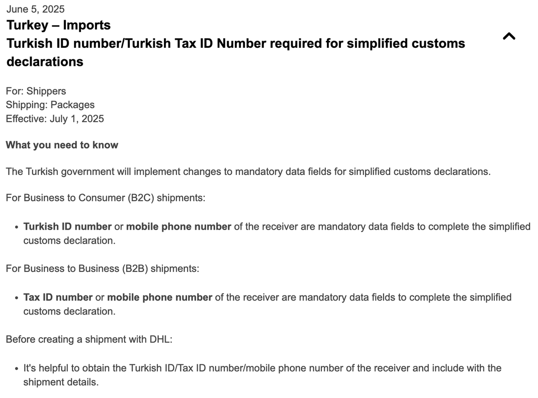 Shipments over $800 (USD) now require formal entry process. These shipments are now subject to import customs duties based on the Harmonized Tariff Schedule of the United States (HTSUS), which may include: General Duty Rate, Section 301 duties, and applicable IEEPA duties.