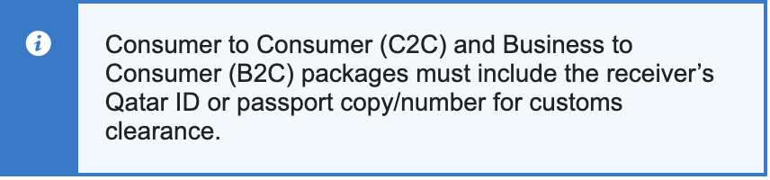 When shipping to Qatar ensure delivery address contains: