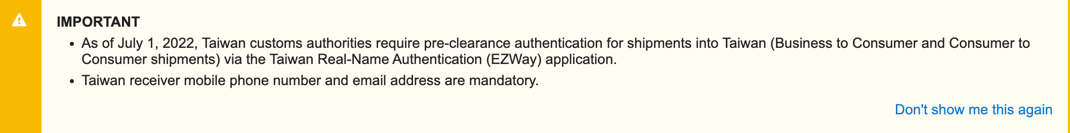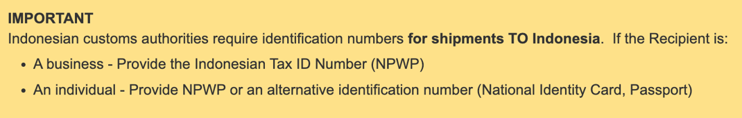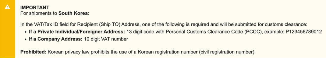U.S. Customs and Border Protection require a Social Security Number (SSN) to be included in the delivery information.