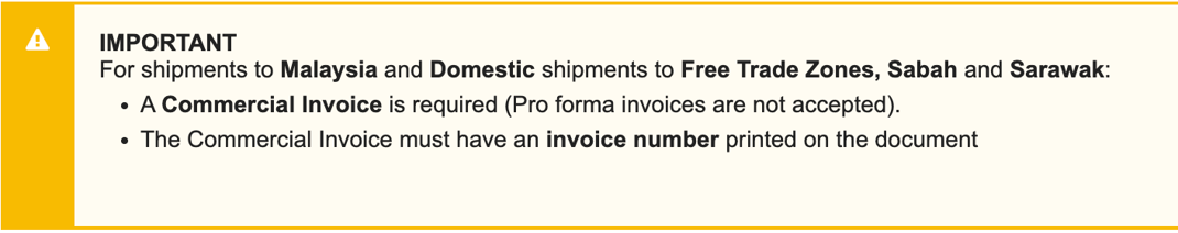 A complete and accurate customs invoice (Commercial/Proforma) will help ensuring a smooth customs clearance