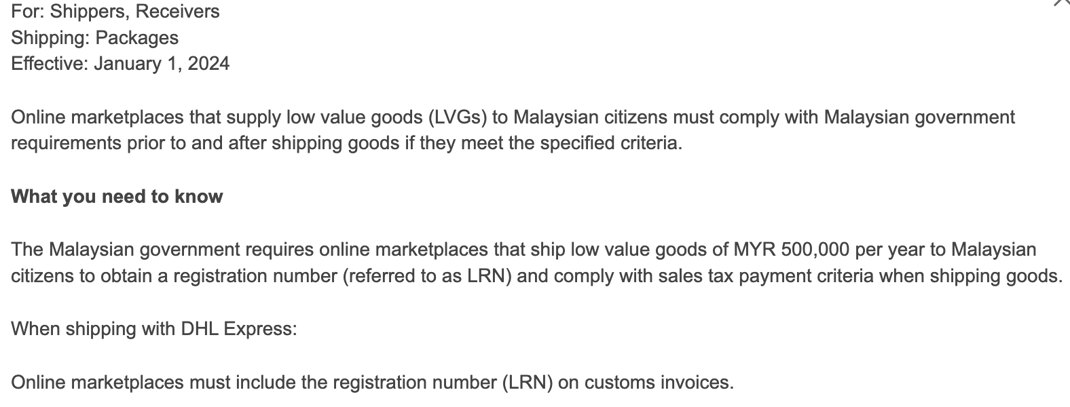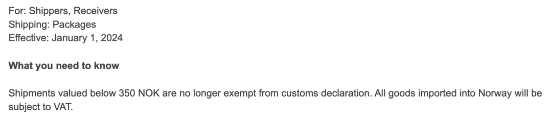 For: Shippers, Receivers (Re: Low Value Import VAT)