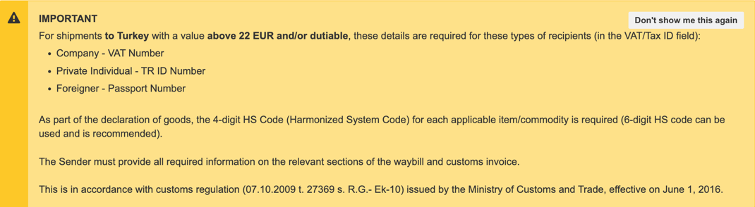 The Turkish customs authorities have changed the tax assessment threshold applied to imported goods.
