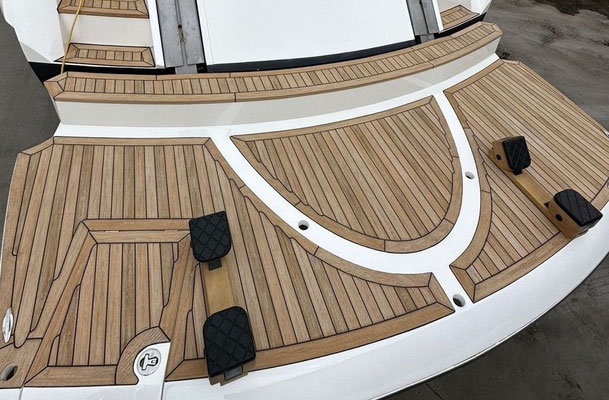 The PWC / jetski chocks we offer all come with two types of mounting system one which is suitable for teak decks (flush mount), the other for GRP & synthetic teak decks (low profile mount).