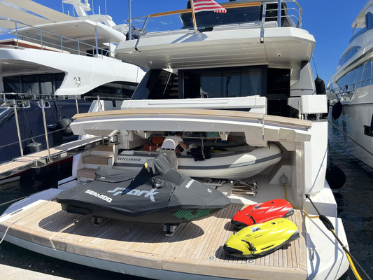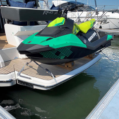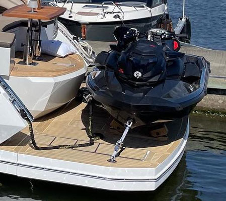 Jetski chocks are specialised equipment used to secure and transport jetski's onboard Superyachts and Motor yachts. These chocks are designed to securely hold your (sit down) jetski / PWC in place during transit, ensuring its safety and stability. They are made from Iroko, a very durable hardwood to withstand the harsh marine environment.