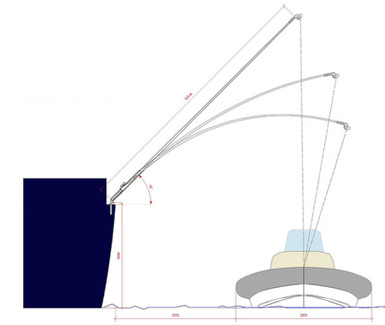 The further apart the attachment points are, the better. It is advisable for the poles to be pointing towards the Tender / Jetski at 90 degrees.