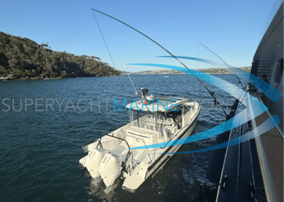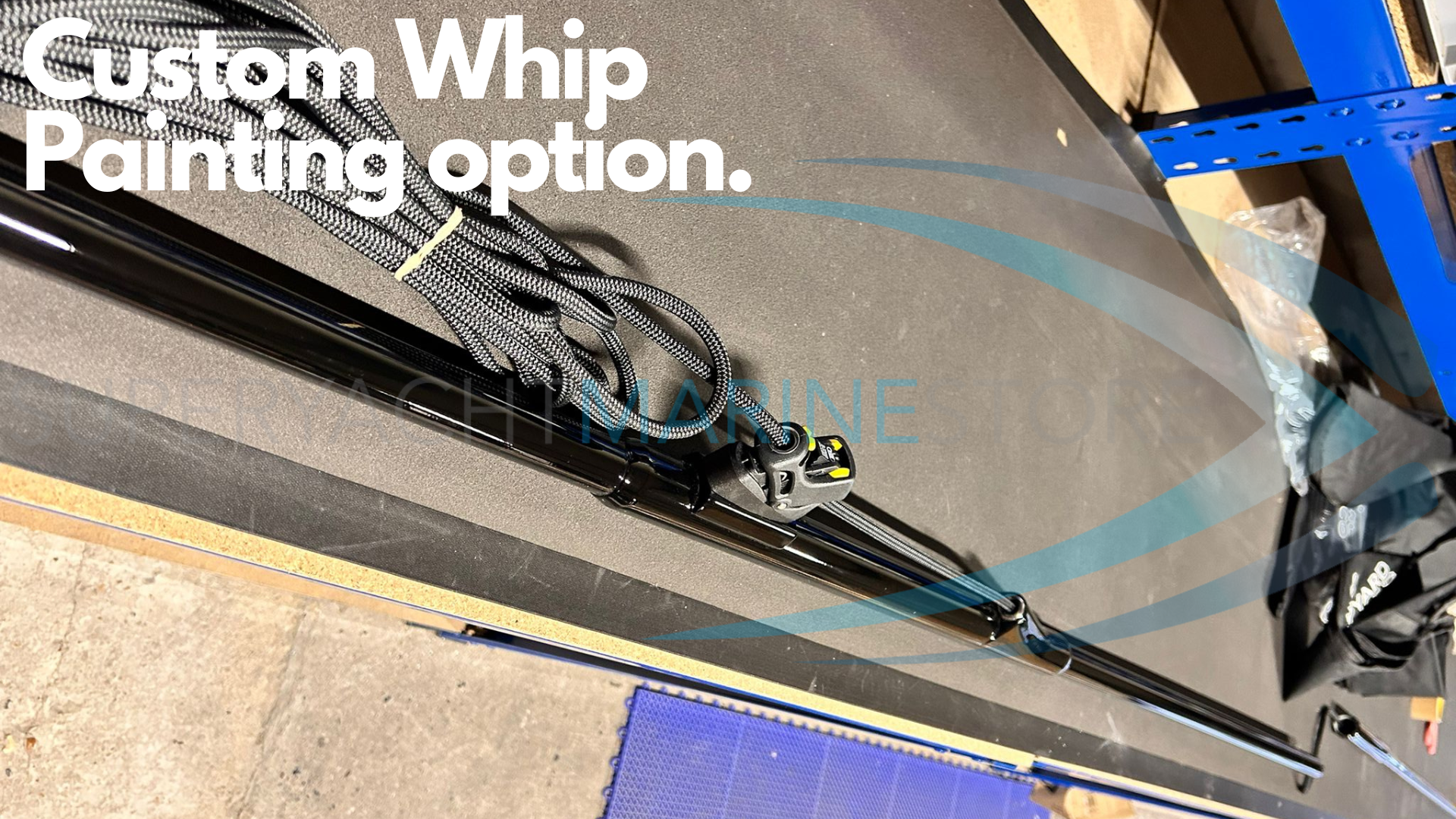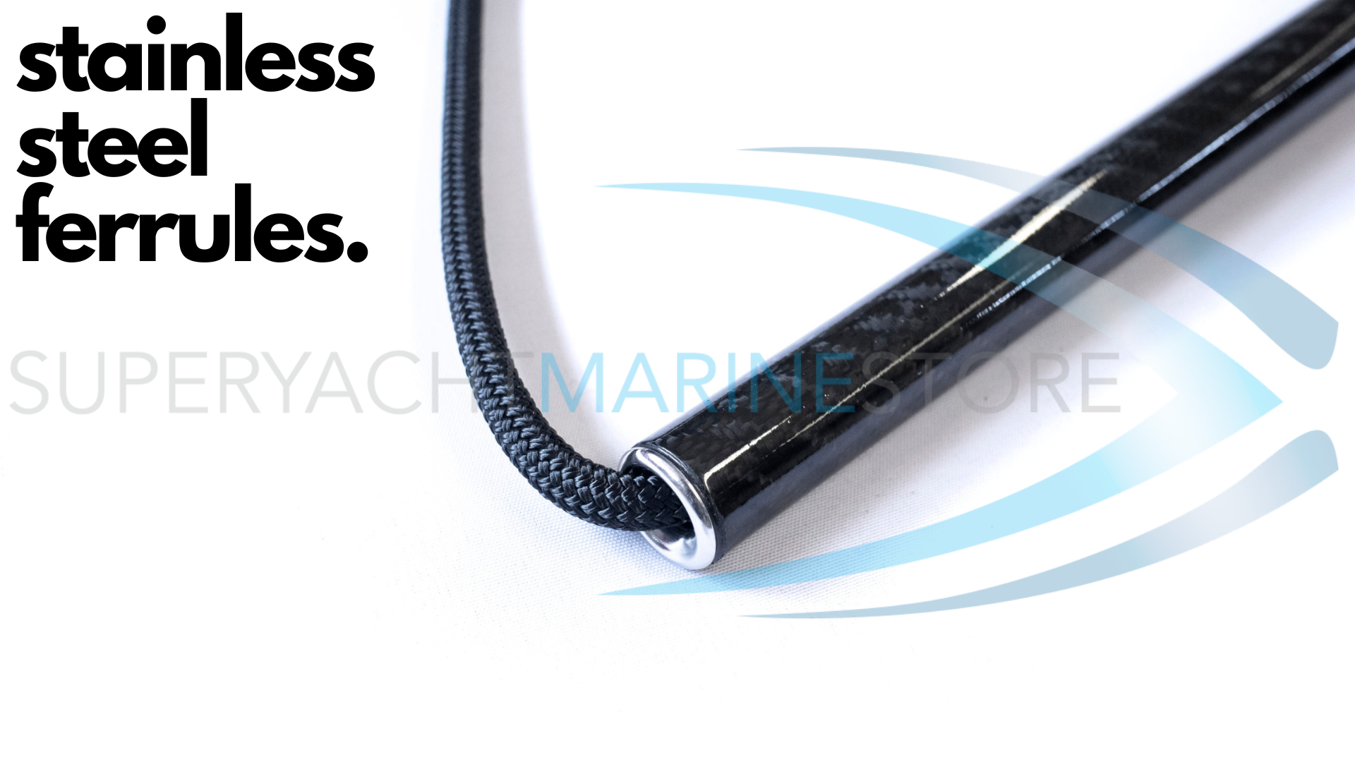 Carbon Tender Mooring Whips are designed for larger tenders, chase boats and limousine tenders up to 12m LOA and weighing between 7000kg - 12,000kg. These Mooring whips have internally run whip
